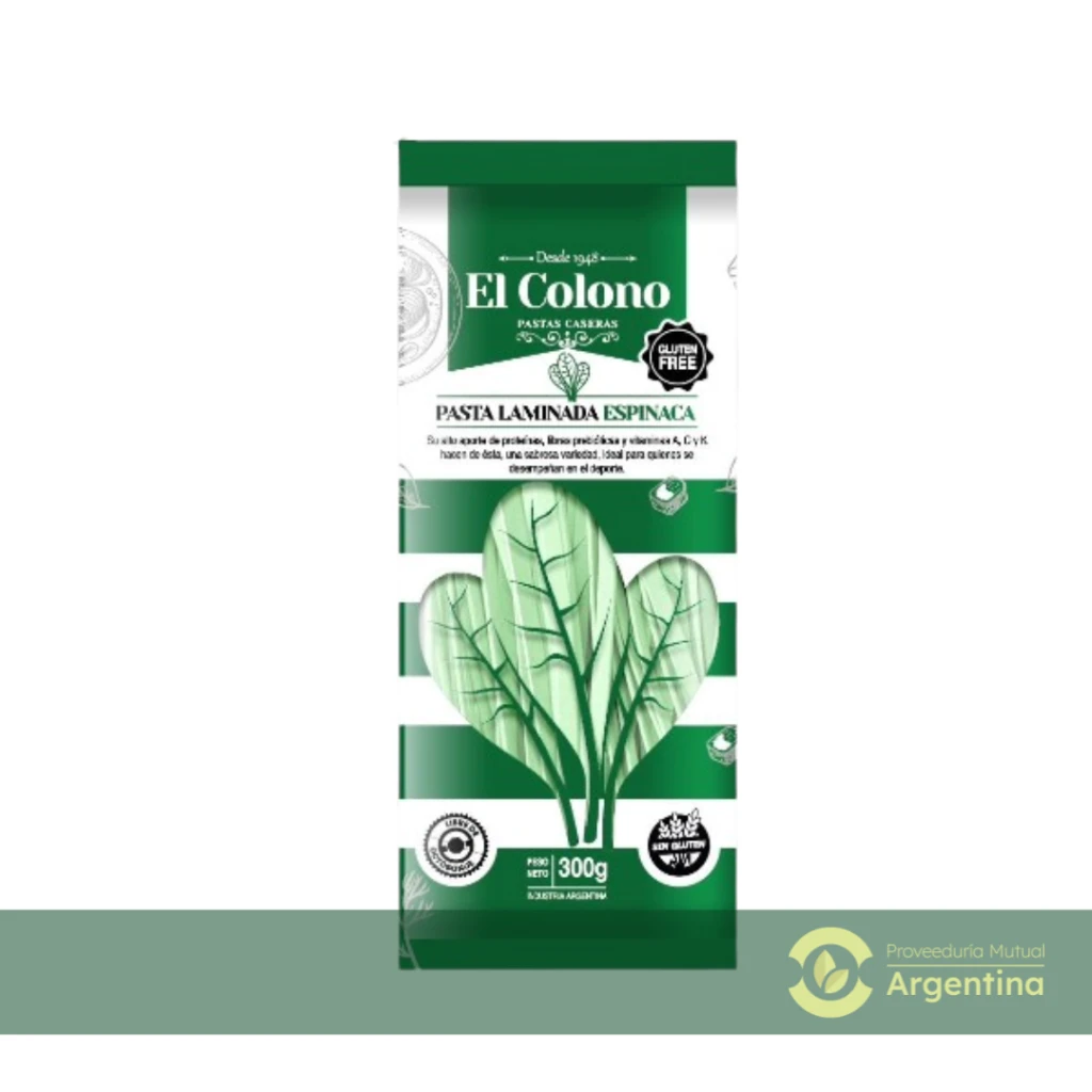 Pasta Laminada libre de gluten con espinaca. Su alto aporte de proteínas, fibras prebioticas y vitaminas A, C y K hacen de ésta, una sabrosa variedad ideal para quienes se desempeñan en el deporte.