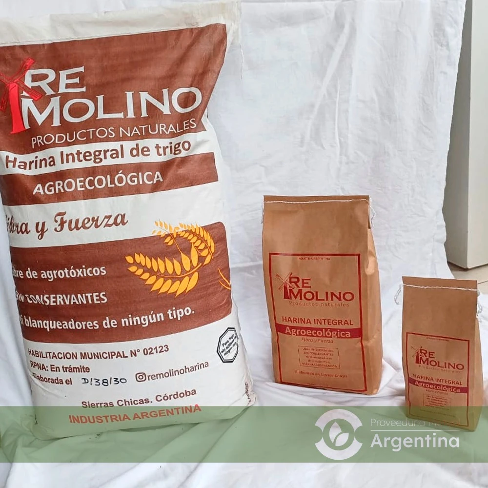 Harina Integral Agroecológica elaborada con todo el grano de trigo y libre de residuos agrotóxicos. Sin conservantes, blanqueadores ni mejoradores de ningún tipo.