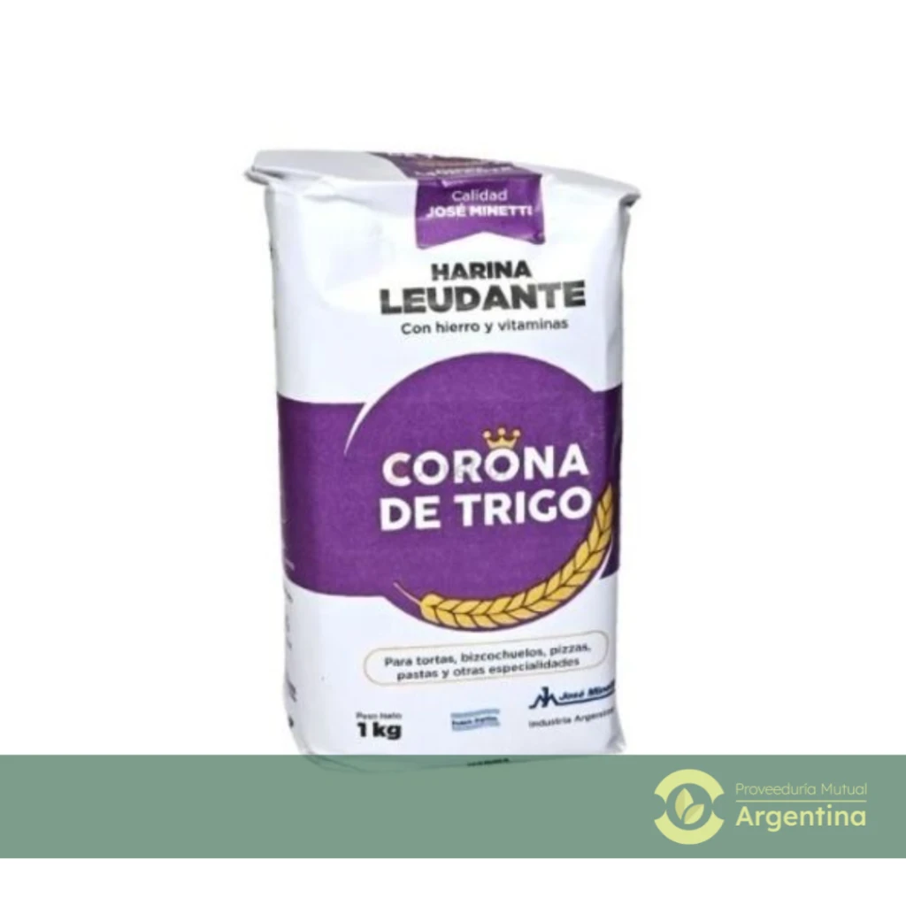 Harina leudante de trigo seleccionado. Conhierro y vitaminas. Apta para panificación. Con TACC.