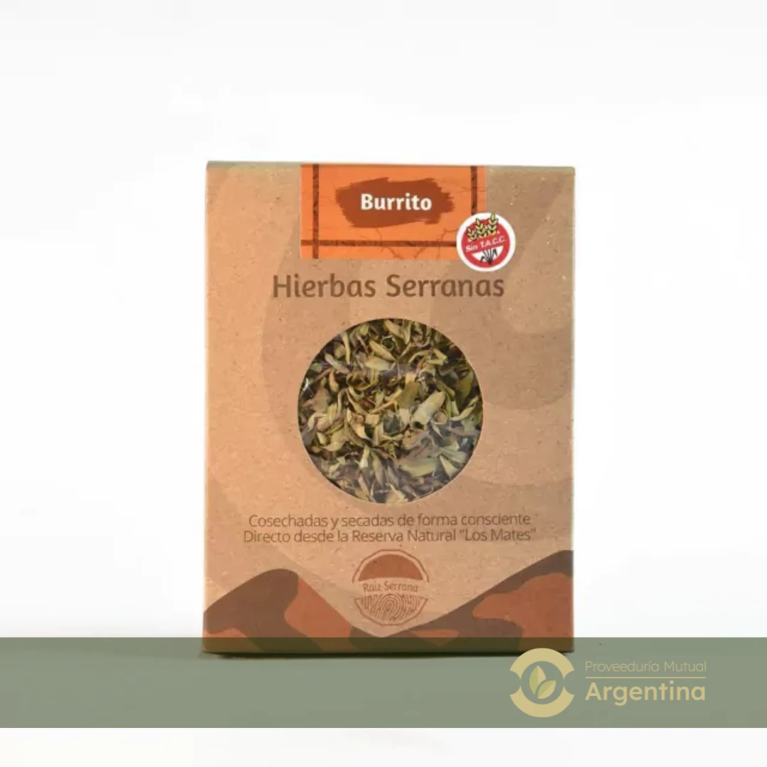 El burrito es un arbusto aromático. Se lo emplea por sus propiedades digestivas y sedantes, además presenta propiedades ansiolíticas. Tranquilizante. Ideal para el sistema nervioso. Mejora el sistema digestivo. Ayuda a prevenir trastornos hepáticos. Combate la acidez. Ayuda a calmar los dolores estomacales, cólicos, eliminar gases intestinales y curar los empachos.